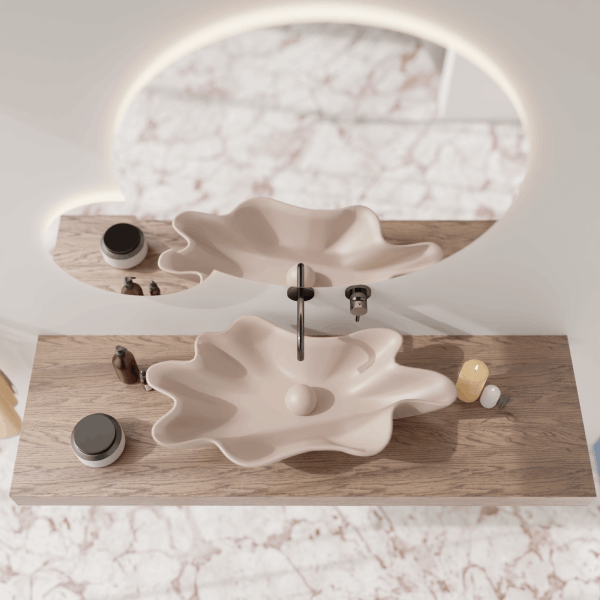 Nowoczesna umywalka nablatowa, wykonana ręcznie we Włoszech. Wykończona ze wszystkich stron. Dostępna w różnych wykończeniach ceramicznych.